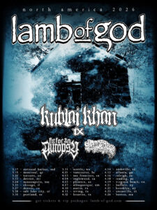Lamb of God has just announced a 2026 North American Tour, with support from Kublai Khan TX, Fit For An Autopsy, and Sanguisugabogg. Mark Morton says, “We are beyond thrilled to announce the loudest, proudest, floor shakin’-est, earth quakin’-est, ear-splittin’-est, mosh pittin’-est, undiluted, undisputed HEAVIEST tour of the whole damn year. Is this the largest collection of RIFFS ever assembled under one roof? It would seem so. Lamb of God, Kublai Khan TX, Fit For An Autopsy, and Sanguisugabogg. Do not miss this shit”. The announcement was accompanied by the band’s first new single since 2022 – check out “Sepsis” here: https://www.youtube.com/watch?v=MEb49Q9ZRGo. For all the tour dates, head to: https://www.lamb-of-god.com/.